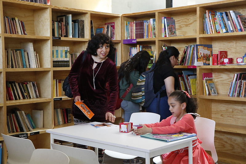 Biblioteca bilingüe con libros, audiolibros y materiales para todas las edades. Ofrece actividades de lectura y narración en un espacio que promueve la alfabetización y el aprendizaje.